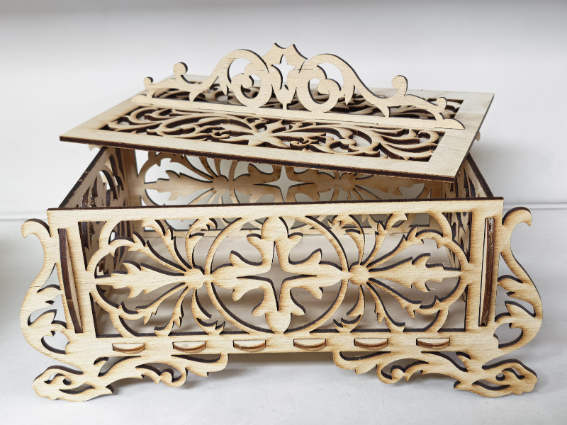 Box Holz mit Deckel und Ornamente
